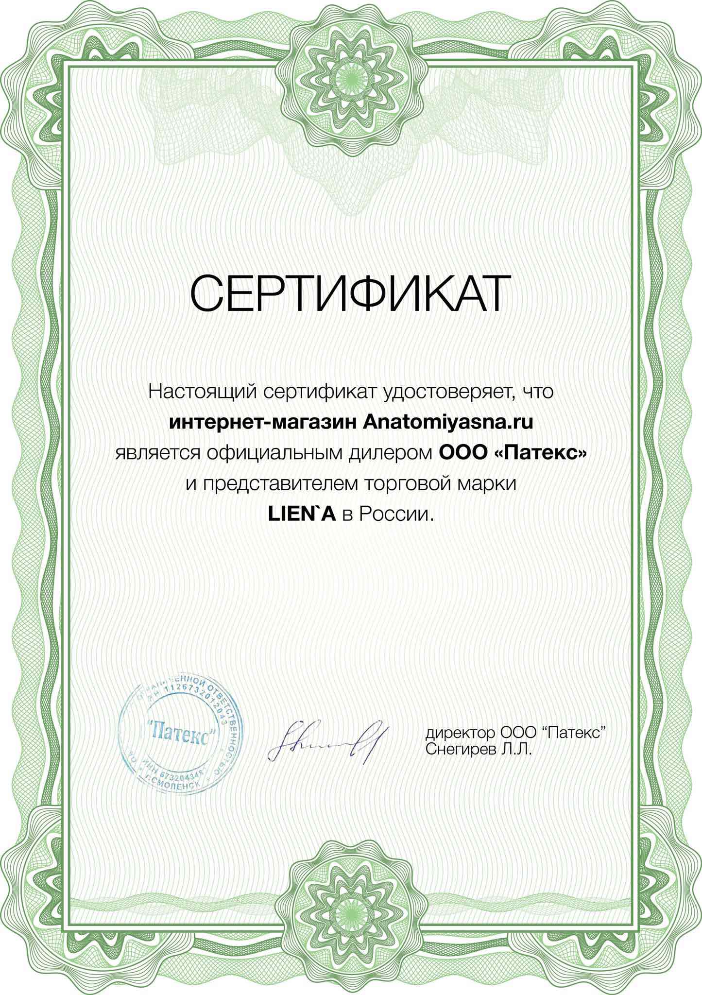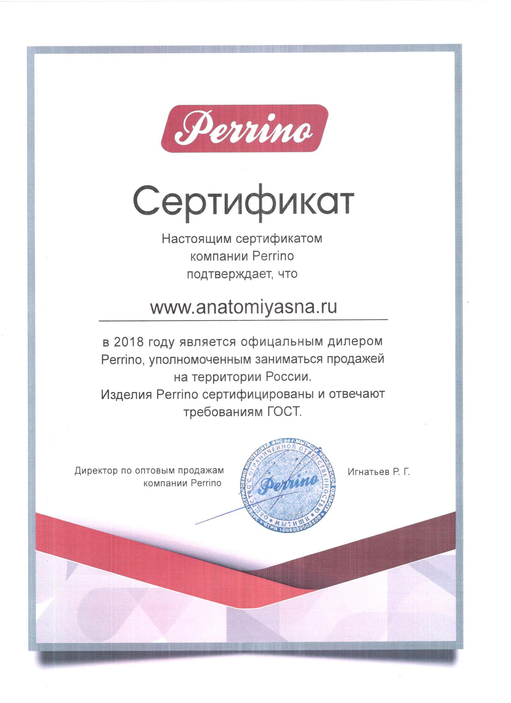 Сертификаты официального дилера